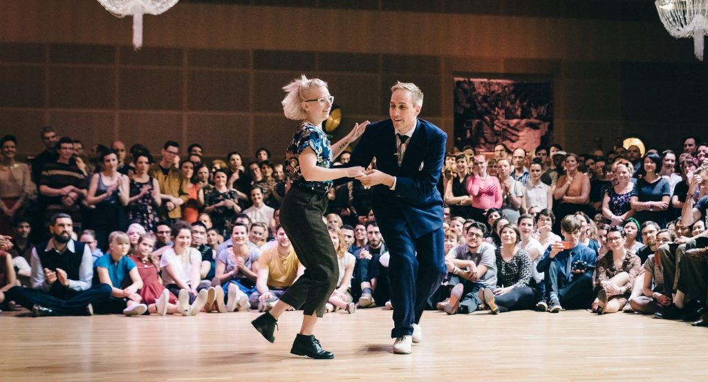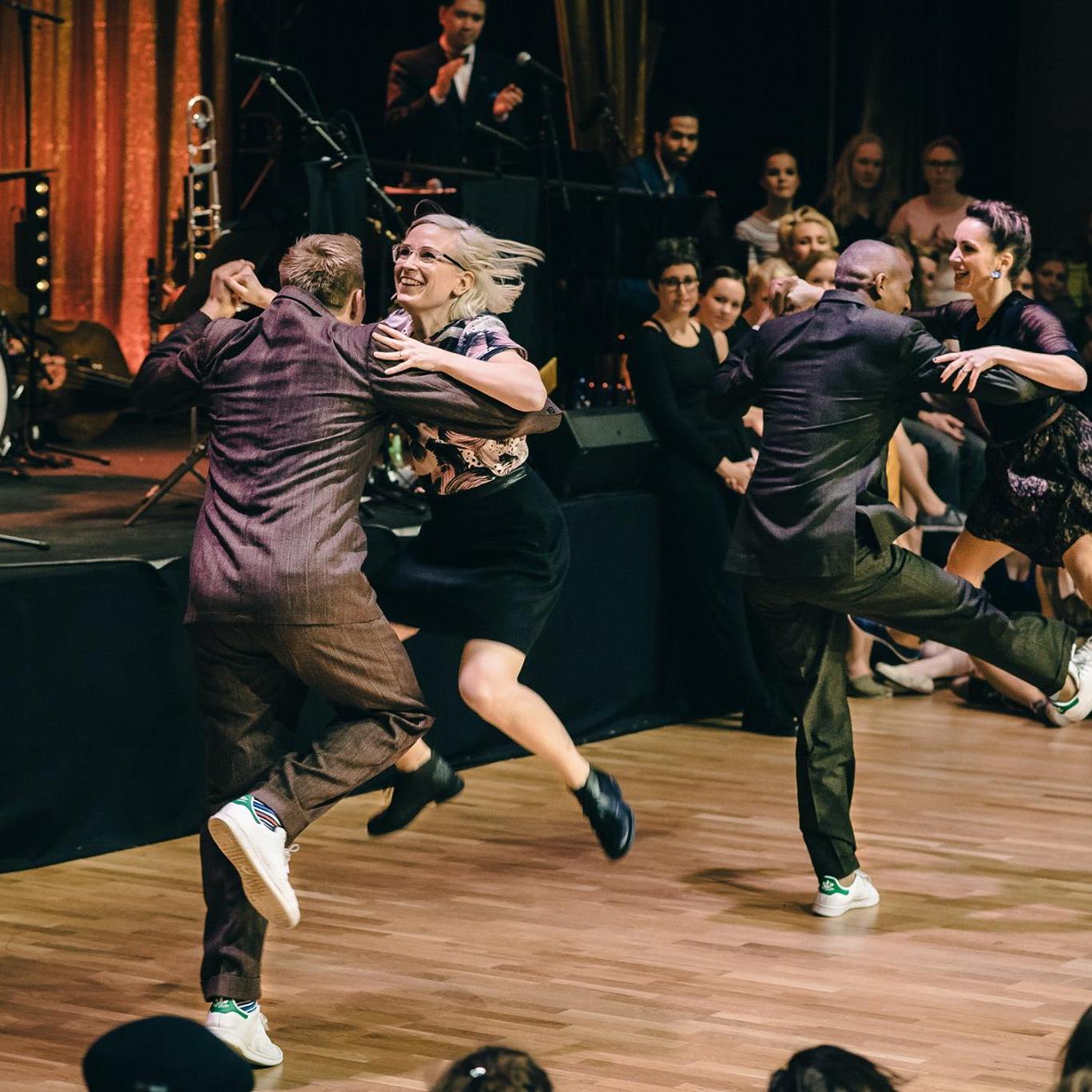 Since 1999, he has been teaching Lindy Hop around the world, from national weekend workshops to major international dance camps. He is also a founding member of some of the most influential modern Lindy Hop troupes, including Minnie’s Moochers, Mad Dog, and Silver Shadows.